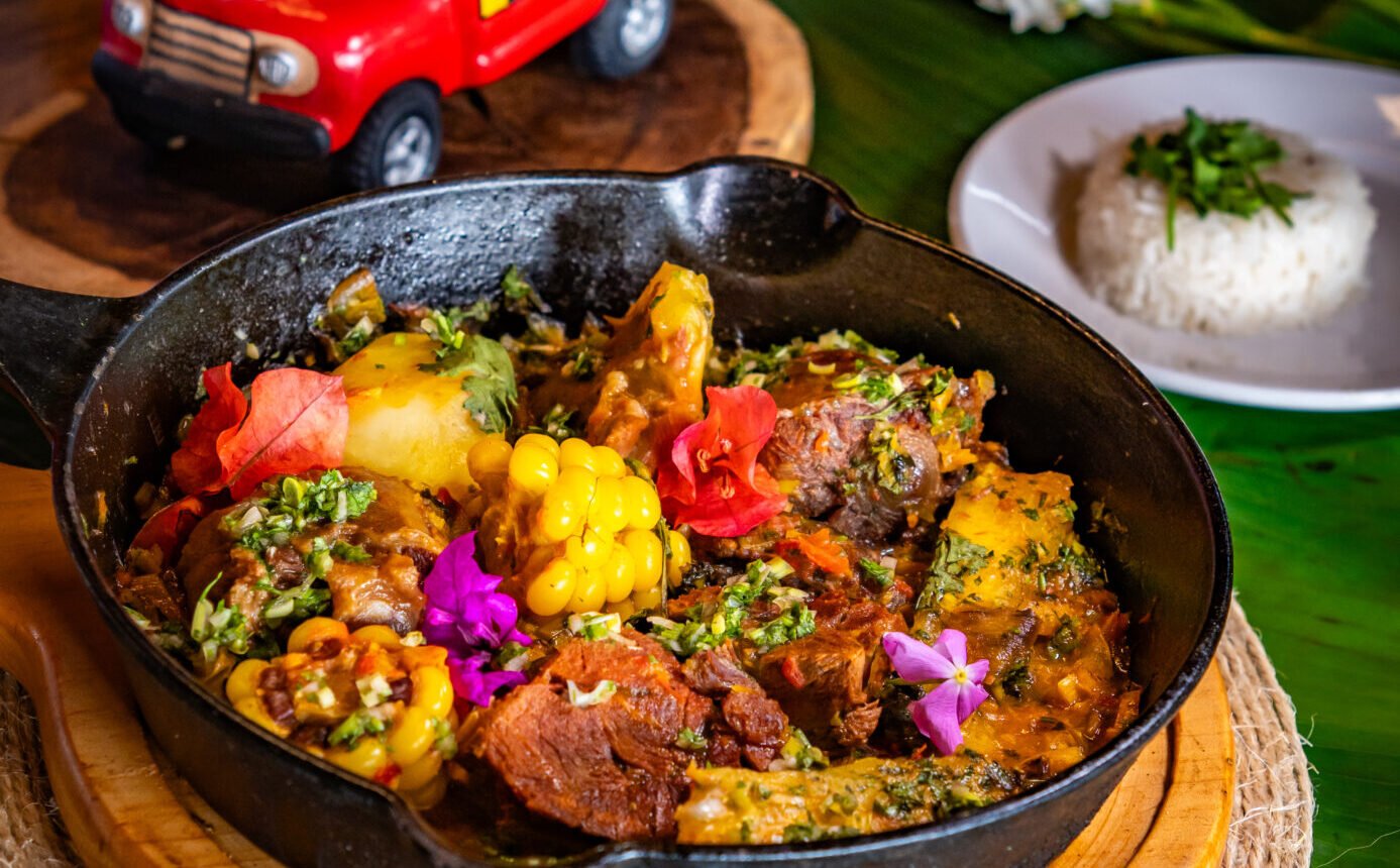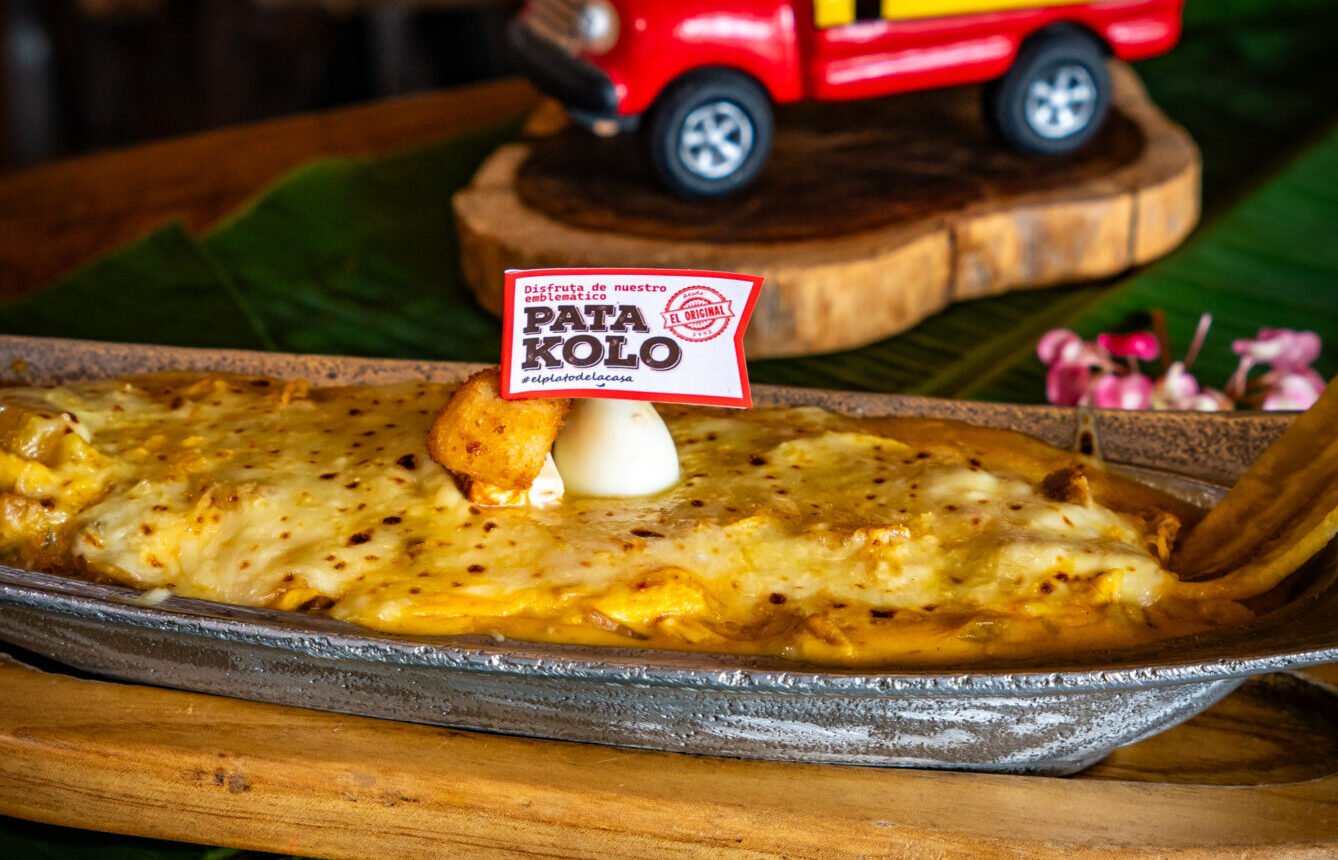 Nuestro emblemático PATAKOLO®️, el original, un plato típico de la casa, con más de 20 años de historia, combina lo mejor del plátano, con una salsa especial acompañada de carne, pollo desmechado, chicharrón y piña. Este es un imperdible cuando vengas a San Joaquín.